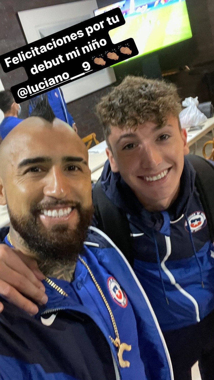 Minutos más tarde lo hizo el centrocampista Arturo Vidal, quien también aprovechó su cuenta de Instagram para felicidad al delantero colocolino. “Felicitaciones por tu debut mi niño”.