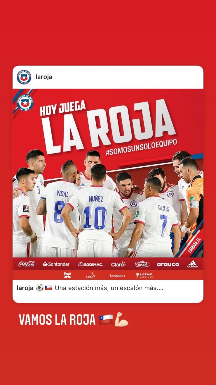 Es producto de esta situación que el delantero, a pesar de la distancia que tiene actualmente con nuestro país, envió su apoyo a la Selección Chilena para este crucial duelo ante los ecuatorianos. “Vamos La Roja”, fue el mensaje que compartió en su cuenta de Instagram.
