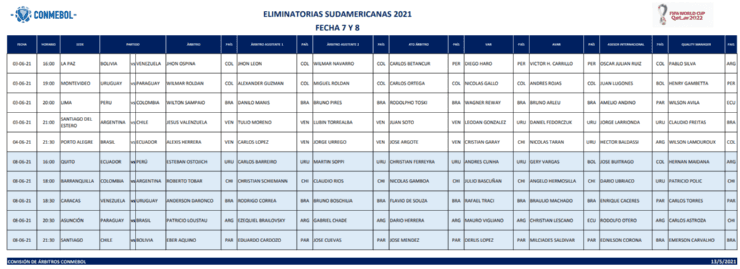 Una instancia en la cual no está ajena los cometidos y desarrollo de estos dos compromisos, producto de que este martes la Conmebol dio a conocer los árbitros para esta Fecha 7 y 8 en los certámenes internacionales a nivel de selección.