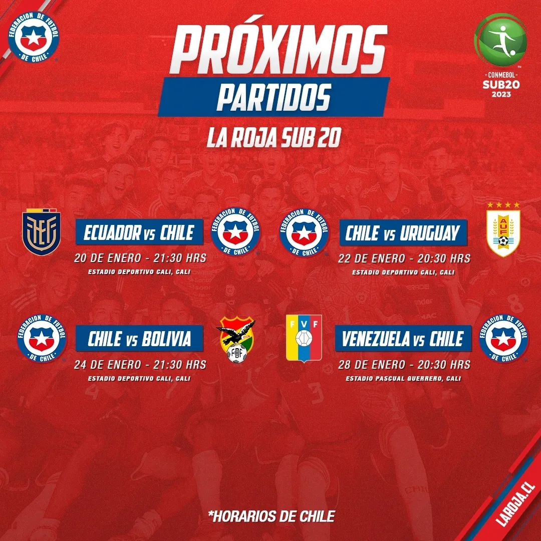 La Roja debutará en este torneo juvenil el viernes 20 de enero de 2023 a las 21:30 horas de Chile.
