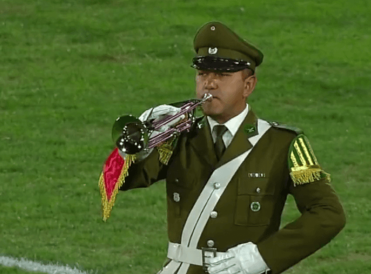 Ahí los jugadores de ambas escuadras se dieron cuenta de esta situación y le avisaron al árbitro, quien devolvió el balón hasta el círculo central y esperó que el carabinero finalizara el homenaje para dar el vamos al partido.