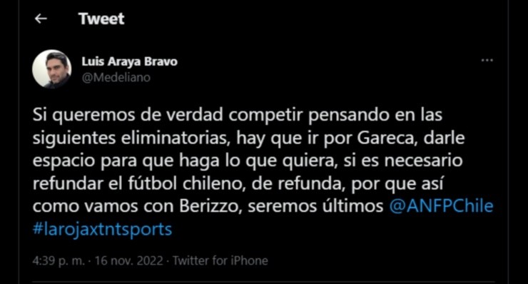 Por aquello, es que los mismos fanáticos de La Roja tienen a su candidato perfecto para sustituir al técnico argentino y es alguien que más de una vez se nombró como posible candidato para asumir: Ricardo Gareca.