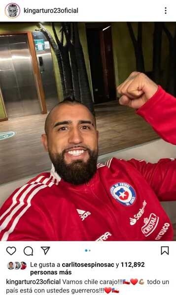 “Vamos Chile carajo. Todo un país está con ustedes, guerreros”, colgó Vidal en su cuenta personal de Instagram, llenándose de inmediatamente de mensajes de apoyo por parte de los hinchas de La Roja en internet.