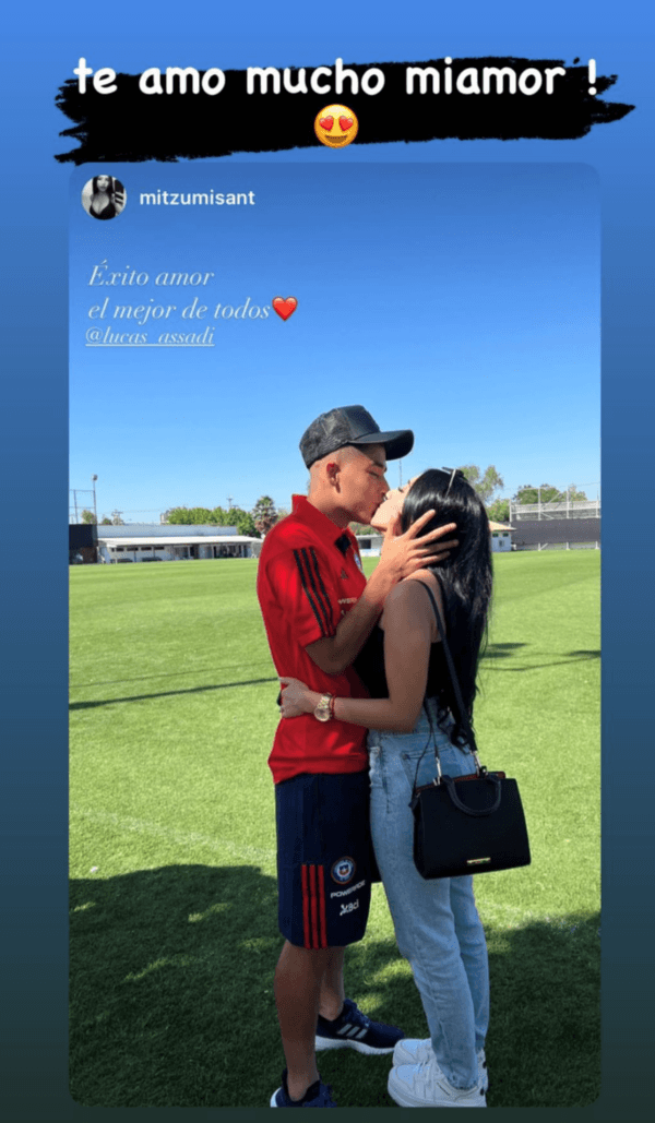 El volante de Universidad de Chile compartió en Instagram una amorosa postal junto a su novia, Mitzumi, cuando se despedían en las canchas de Juan Pinto Durán, en la comuna de Macul.