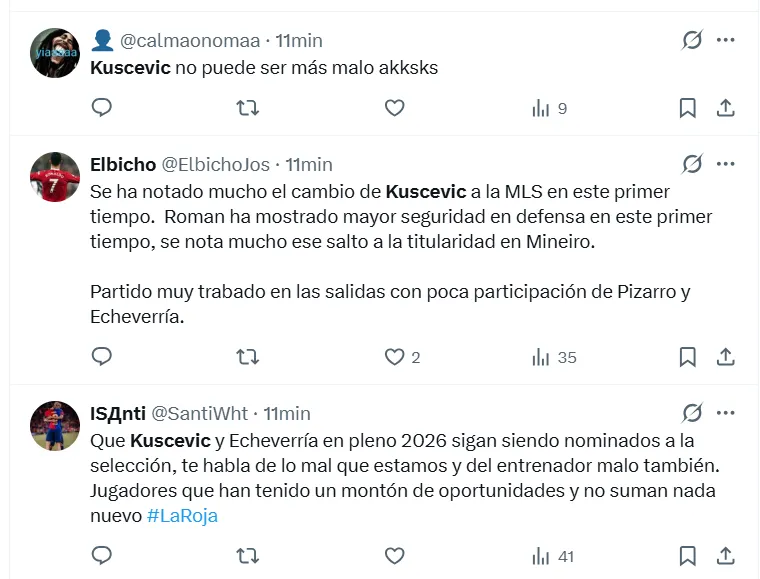 Pese al triunfo, uno de los focos de atención estuvo en el rendimiento de Benjamín Kuscevic, quien fue duramente criticado en redes sociales durante el primer tiempo. Sus errores en la marca y algunas imprecisiones en la salida generaron una ola de comentarios negativos por parte de los hinchas.