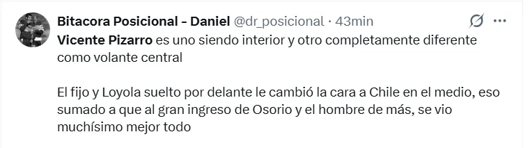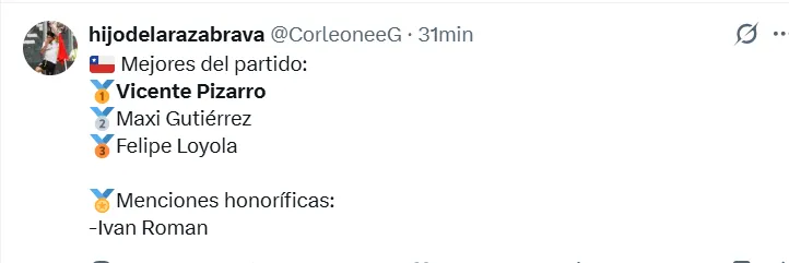 Si bien no apareció en el marcador, su rendimiento fue ampliamente destacado en redes sociales, donde los fanáticos resaltaron su madurez y protagonismo en el mediocampo, consolidándose como una de las piezas más prometedoras del recambio en la selección chilena.