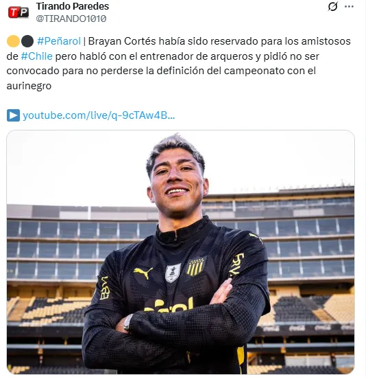 “Brayan Cortés había sido reservado para los amistosos de Chile, pero habló con el entrenador de arqueros y pidió no ser convocado para no perderse la definición del campeonato con el aurinegro”, señalaron.