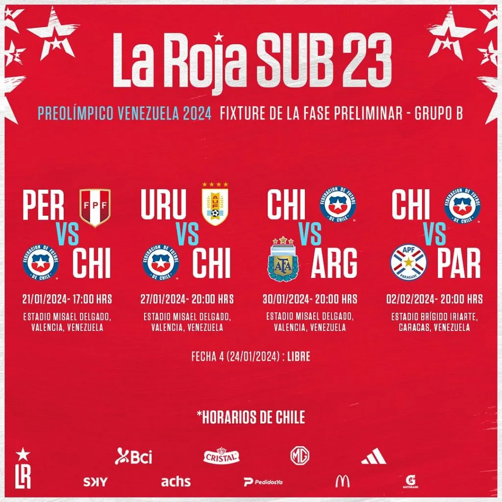 ¿Cuándo juega la Roja sub 23 en el Preolímpico?
