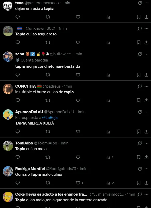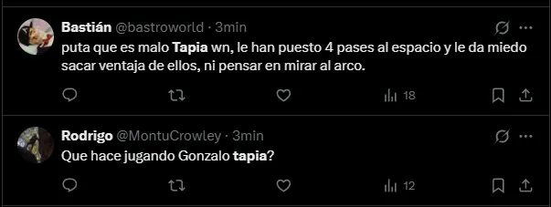 Los comentarios de los hinchas contra Gonzalo Tapia en los primeros minutos: