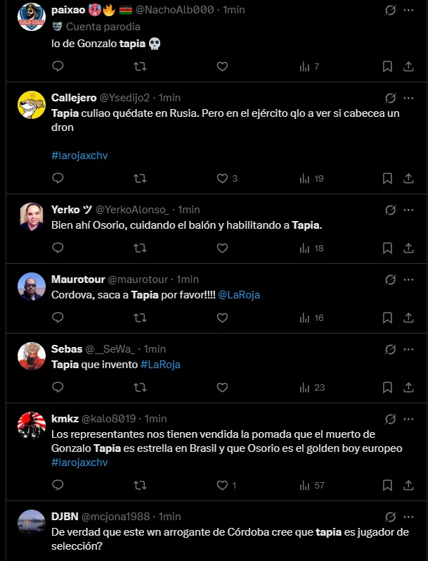 El ambienteen redes reflejaba la frustración por la falta de claridad en el ataque chileno. La sensación general era que el primer tiempo podría terminar deslucido y sin emociones, con pocas señales positivas