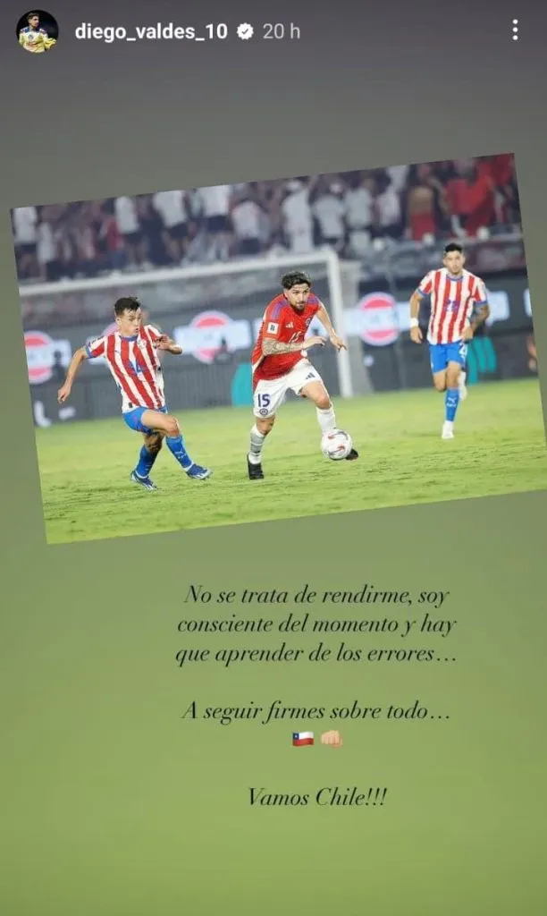 Ahora, en redes sociales, y a poco más de 24 horas del duelo entre La Roja y Ecuador por las Eliminatorias Sudamericanas, Diego Valdés rompió el silencio con una contundente historias en redes sociales.
