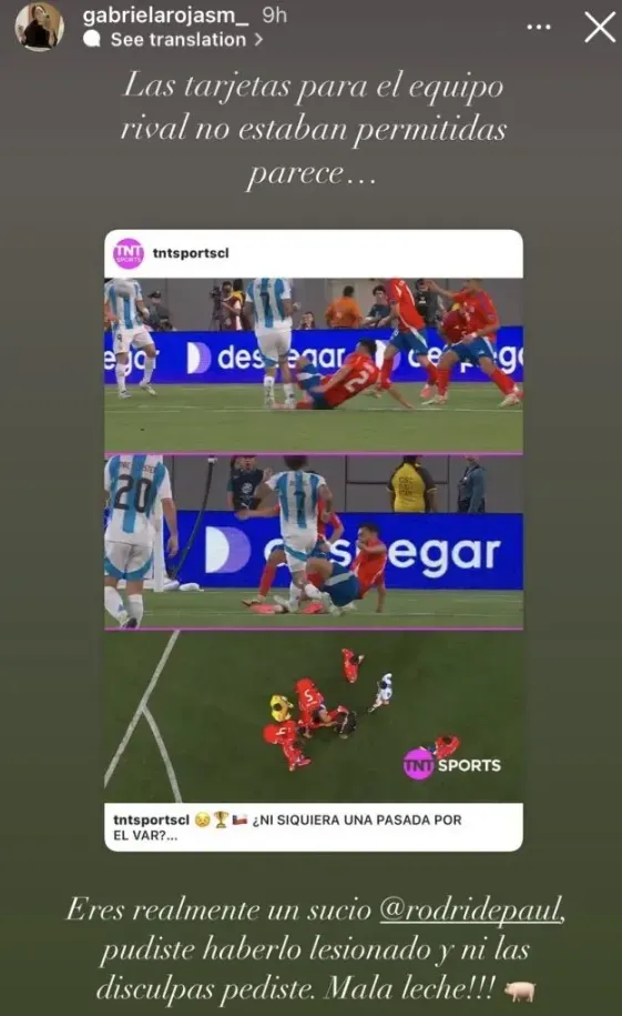 Fue a través de su cuenta de Instagram que Gabriela Rojas, esposa del futbolista surgido en las divisiones inferiores de Colo Colo, no halló nada mejor que irse en picada contra el centrocampista del Atlético de Madrid.