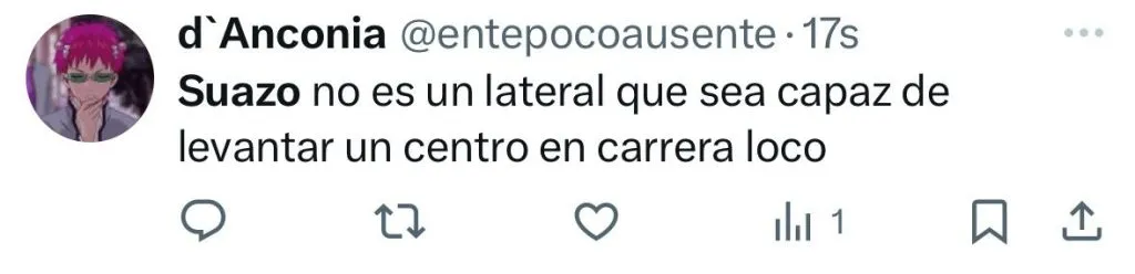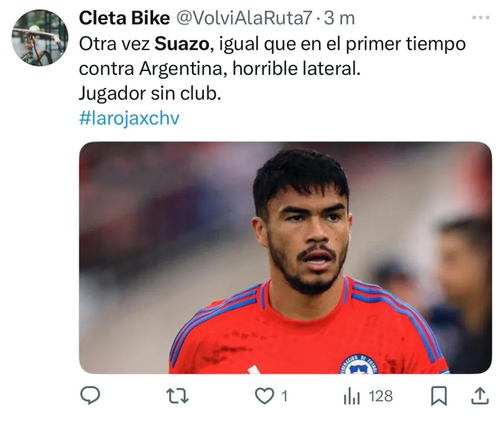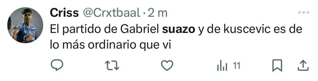“Suazo no es un lateral que sea capaz de levantar un centro en carrera”, “el partido de Gabriel Suazo y Kuscevic es e lo más ordinario que vi”, “otra vez Suazo, igual que en el primer tiempo contra Argentina, horrible lateral”, fueron parte de los comentarios.