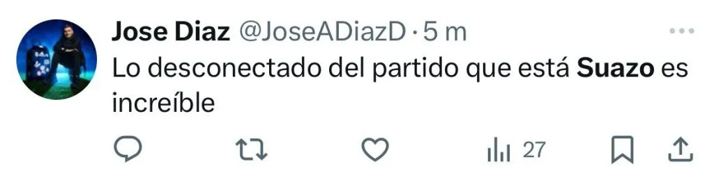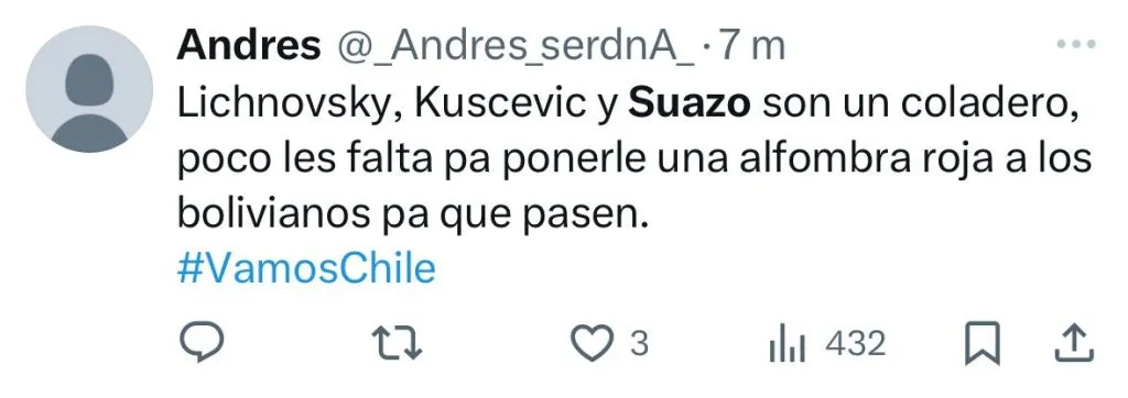 Los ataque de la parcialidad nacional fueron dirigidos para el lateral izquierdo Gabriel Suazo, quien no ha tenido un buen desempeño, sumado a las condiciones extremas del altiplano. Esto lo llevó a ser tendencia en X (ex Twitter).