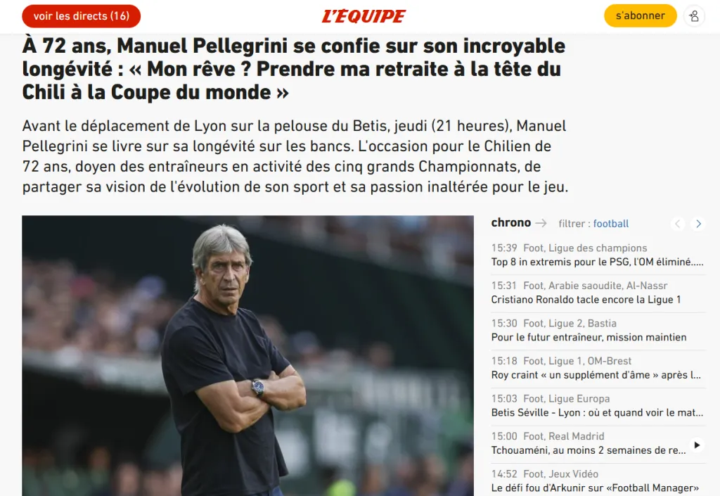 Si bien en la antesala del duelo entre Real Betis y Olympique de Lyon por la Europa League, el ‘Ingeniero’ había expresado mesura sobre su más cercano futuro, en entrevista con el prestigioso diario francés, L’Equipe, el entrenador chileno fue más allá.