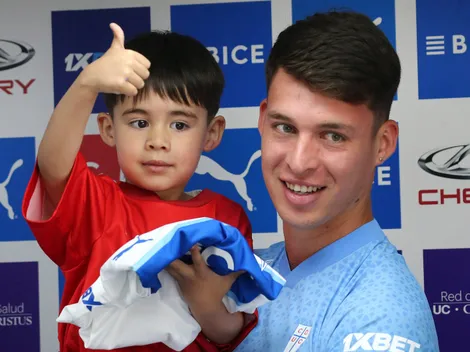 Alfred Canales vivió un emotivo y jocoso momento como nuevo jugador de Universidad Católica. Su hijo Santino se robó las miradas en San Carlos de Apoquindo.