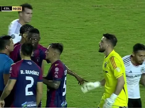 La señal oficial del Colo Colo vs. Monagas captó el momento en que Marcos Bolados recrimina duramente a Maximiliano Falcón tras la roja de Fernando De Paul para salvar el papelón albo.