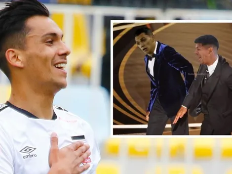 El volante creativo de Colo Colo deja atrás el encontrón con Esteban Pavez tras el partido ante Fortaleza con un meme de la bofetada de Will Smith a Chris Rock en la premiación de los Oscars.