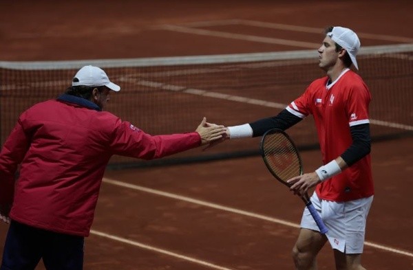 Nicolás Jarry no daba más de alegría, apenas terminó el partido donde venció 6-3 y 6-0 al peruano Nicolás Álvarez, se fundió en un abrazo eterno con su entrenador Nicolás Massu y luego celebró ante el puñado de chilenos que acompañó al equipo nacional en Lima.