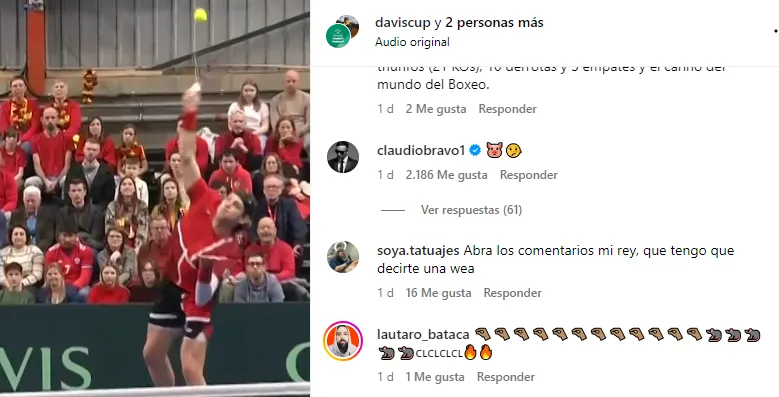 Fue en una publicación con colaboración entre la cuenta de Copa Davis y el polémico tenista belga. Allí, el capitán aprovechó de comentar el post con un emoji de una cabeza de chancho y otra de una cara con la nariz estirada al más puro estilo del “mentiroso” Pinocho.