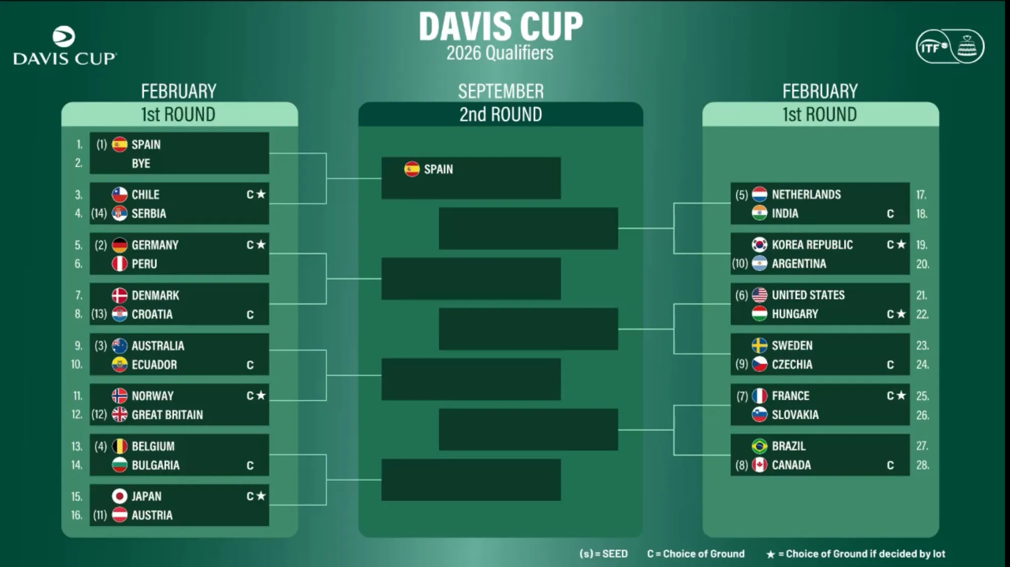 El ganador de la llave entre Chile y Serbia enfrentará a España quien por ser finalista de la edición 2025 quedó exento en la primera ronda por lo que esperará directamente en las Finals de Copa Davis 2026.