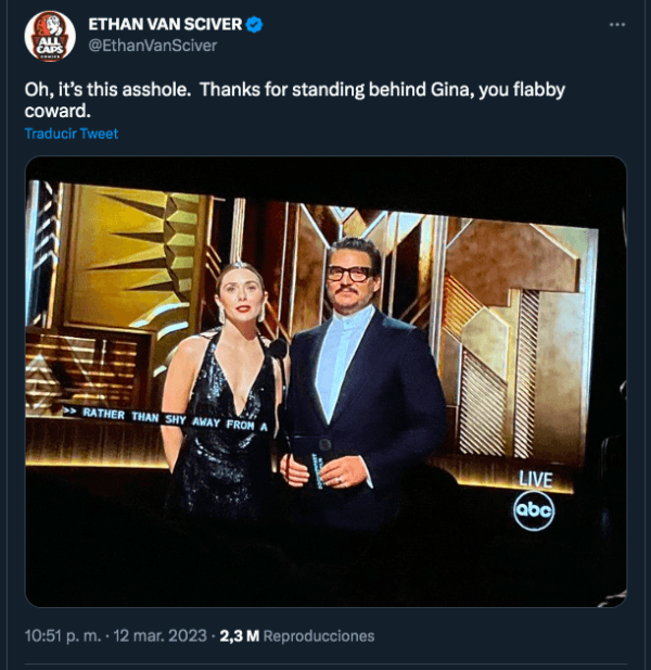 Muy inspirado, Van Sciver decidió evidenciar su odio contra Pascal en un tuit en el que dijo: “Oh, es este imbécil. Gracias por apoyar a Gina, cobarde flácido”.