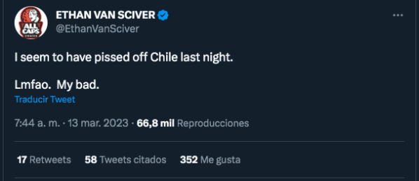 “Parece que anoche hice enojar a Chile”, fue el siguiente mensaje de Van Sciver, cuando despertó la mañana del lunes y recién vio lo que había pasado.
