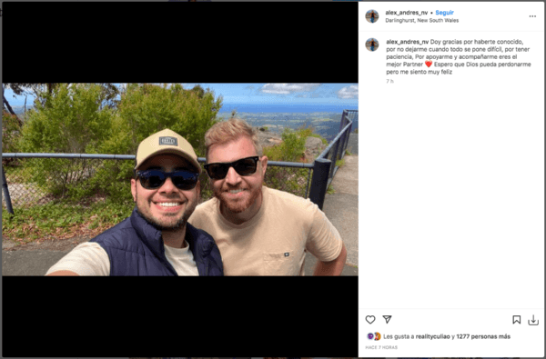 Alexander Núñez, el hombre más conocido como Arenito, quien fuera blanco de críticas por asegurar que la religión lo había curado de la homosexualidad, acaba de presentar a su nueva pareja desde Australia, donde se encuentra “muy feliz”.