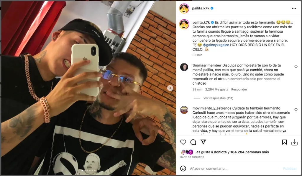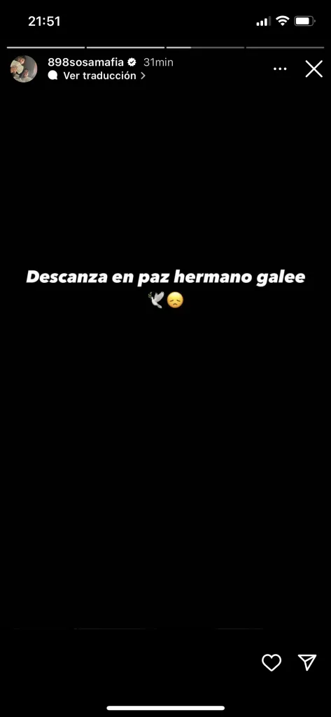 En tanto, Julianno Sosa sólo puso un “descansa en paz, hermano Galee”, para luego sumar una fotografía en la que aparecen juntos.