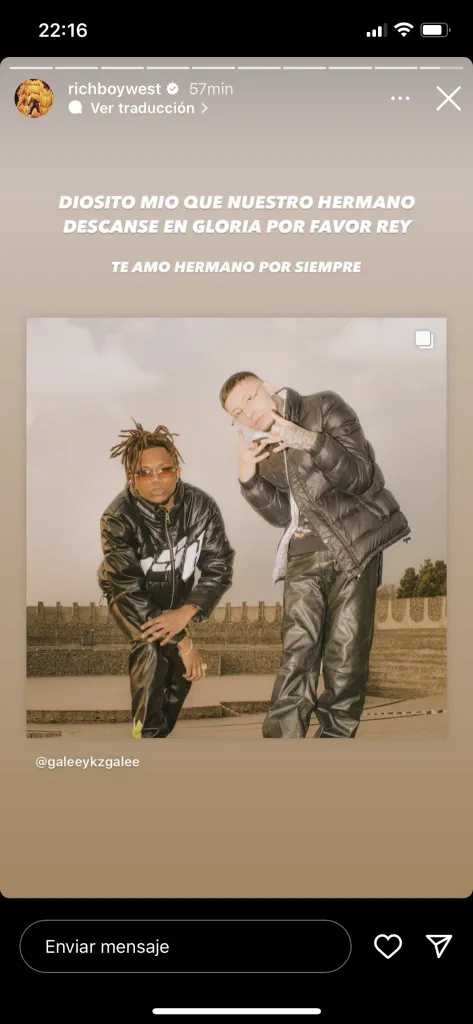 “Diosito mío, que nuestro hermano descanse en la gloria. Por favor, rey”, escribió desde su Instagram Polimá Westcoast.