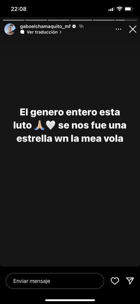 Por su lado, Gabo El Chamaquito lamentó que “el género entero está de luto. Se nos fue una estrella, hueón. La mea volá”.