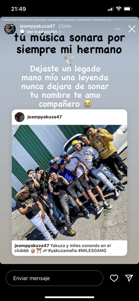 Uno de los primeros en reaccionar fue Jeampy, integrante del sello discográfico Yakuza Mafia y quien trabaja con Zúñiga.