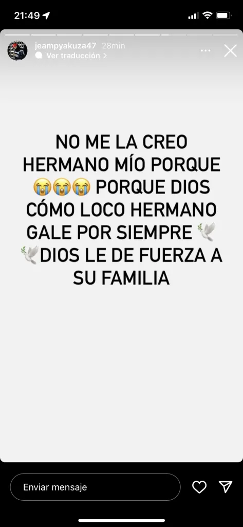 “Compañero tu legado seguirá y permanecerá para siempre. @galeeykzgalee HOY DIOS RECIBIÓ UN REY EN EL CIELO”, sentenció.