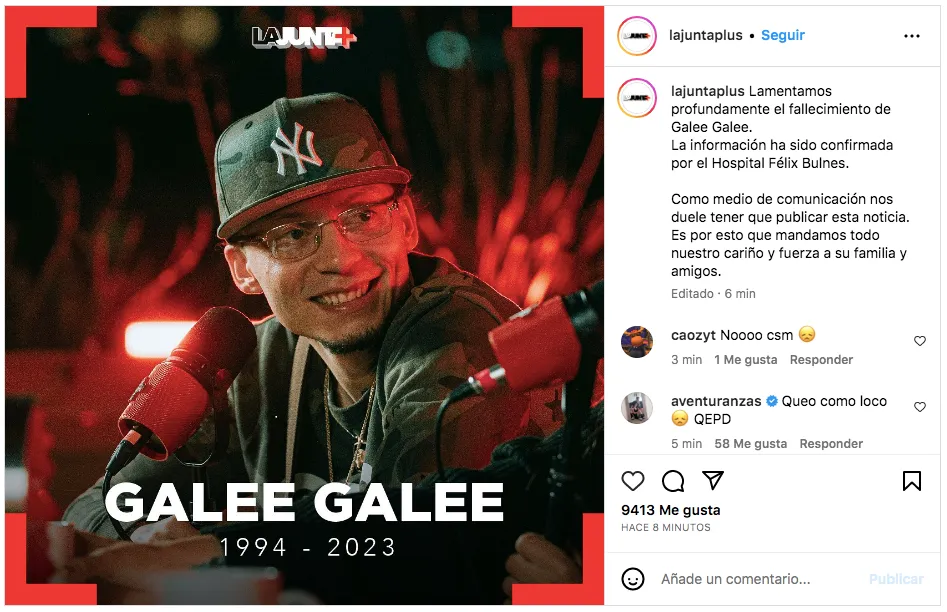 Tanto en redes sociales de sus amigos como en la cuenta oficial de La Junta, se lanzó que la confirmación sobre su deceso.