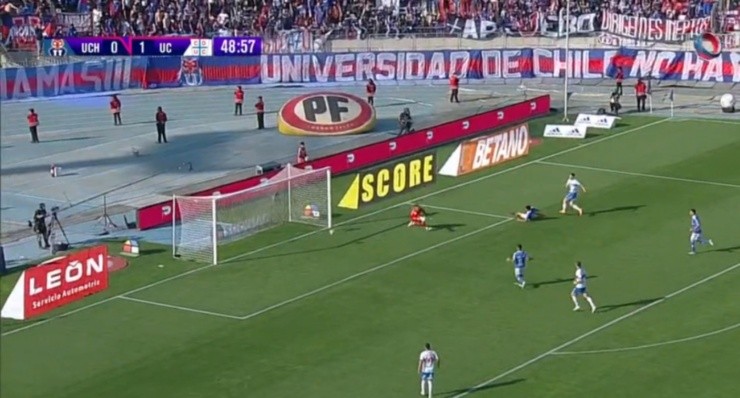 Universidad Católica se mide ante Universidad de Chile por la Fecha 23 del Campeonato Nacional en el Clásico Universitario, donde ya toma la ventaja de dos goles luego que César Pinares convirtiera el 1-0 en el Estadio Nacional durante la primera fracción, a los 8 minutos, precisamente.