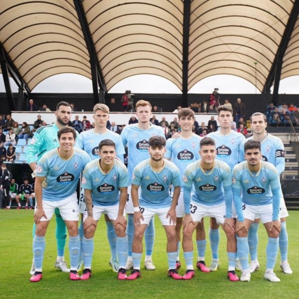 Montes -abajo a la izquierda- fue titular en el Celta B (@CanteiraCeleste)