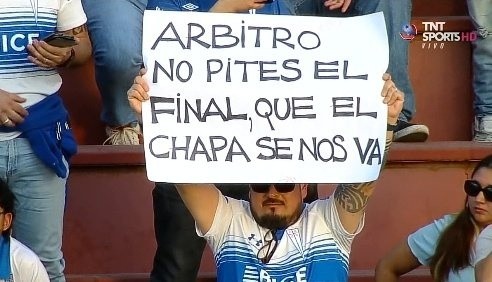 Entre los mensajes que recibió Fuenzalida fue uno directo al árbitro Roberto Tobar. “Árbitro, no pites el final. El Chapa se nos va”, apareció en uno de los carteles de los fanáticos que fueron hasta el Estadio Santa Laura.