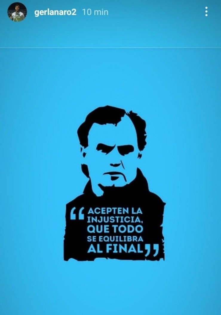Fue por este motivo que el ex zaguero de Palestino mostró su malestar en su cuenta de Instagram y recordó una pólemica frase del ex estratega de la Selección Chilena: Marcelo Bielsa, la cual llamó la atención de varios hinchas en redes sociales.
