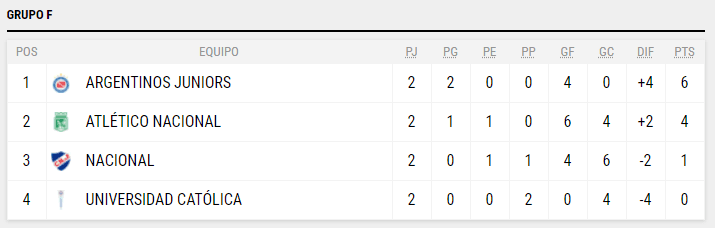Una derrota complicada para el entrenador uruguayo Gustavo Poyet, quien alcanza su segunda derrota con la Universidad Católica en la Copa Libertadores ubicándose en la última posición con cero puntos. Mientras tanto que Argentinos Juniors, lidera el Grupo F con seis unidades y campaña perfecta.