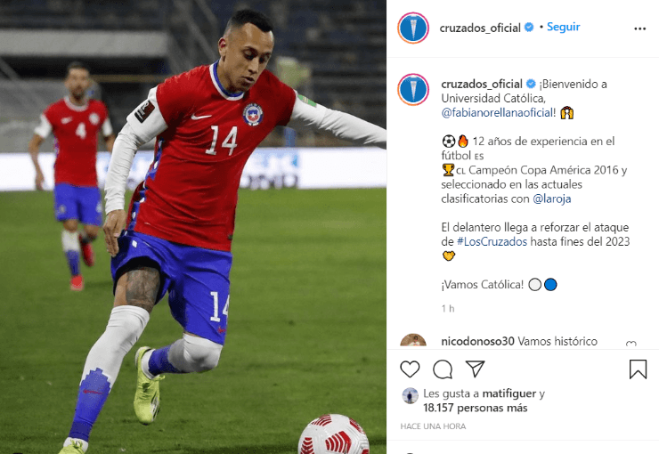 “El jugador ya se realizó los exámenes médicos y llegará al país en los próximos días, para luego de realizar la cuarentena correspondiente para quienes ingresan a Chile, unirse a los entrenamientos del Plantel Profesional”, escribió en un comunicado la UC.