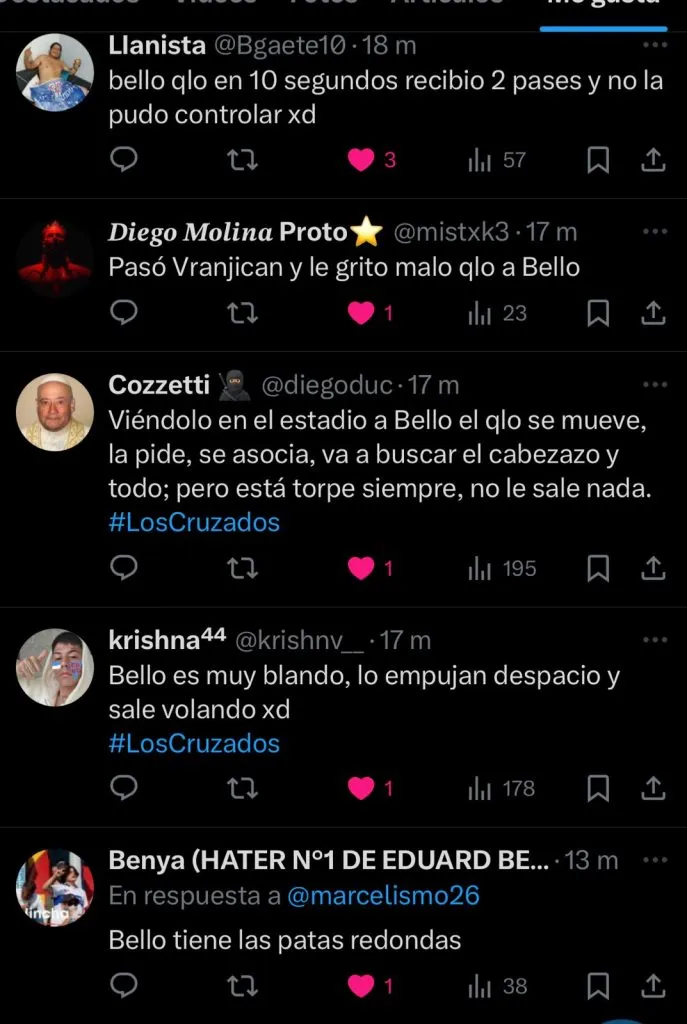 “No hay alguien más que juegue en el puesto de Bello, el loco es cero aporte”, fue lo que señaló otro fanático.
