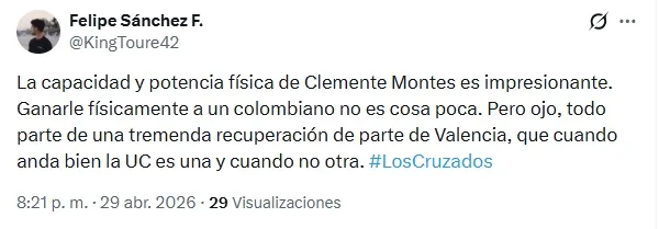 “La capacidad y potencia física de Clemente Montes es impresionante. Ganarle físicamente a un colombiano no es cosa poca” y “Será muy limitado de cabeza, pero es clave“, fueron parte de los comentarios.