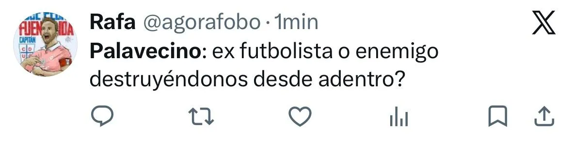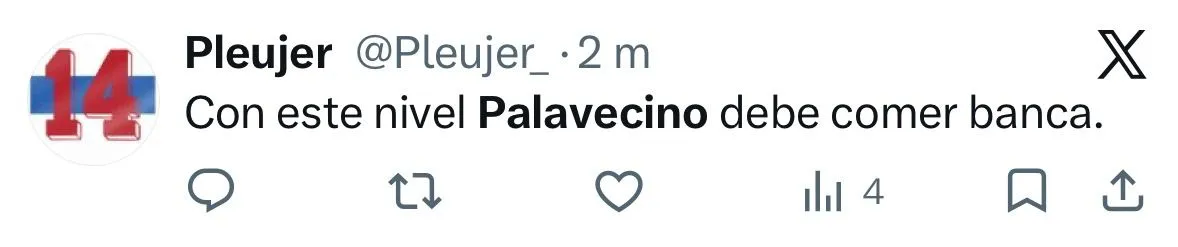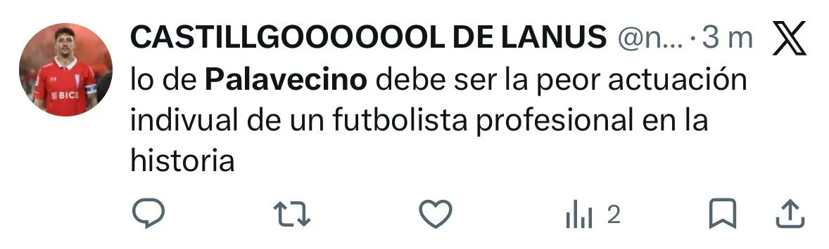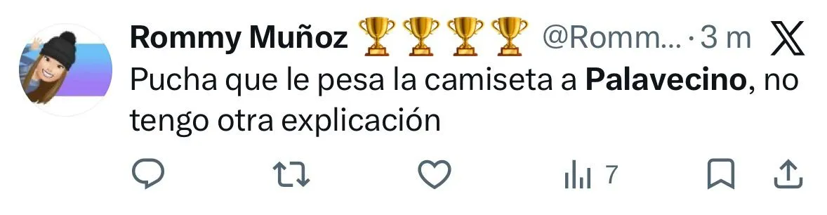 “Avísenle a Palavecino que se su equipo es de camiseta blanca con la franja en el pecho”; “Palevecino, exfutbolista o enemigo destruyéndonos desde adentro”; “Con este nivel, Palavecino debe comer banca”; “Jugador absolutamente intrascendente”, fueron parte de los comentarios en aquella red social.
