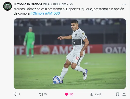 “Marcos Gómez se va a préstamo al Deportes Iquique, préstamo sin opción de compra”, informaron en sus redes sociales sobre este inminente traspaso.