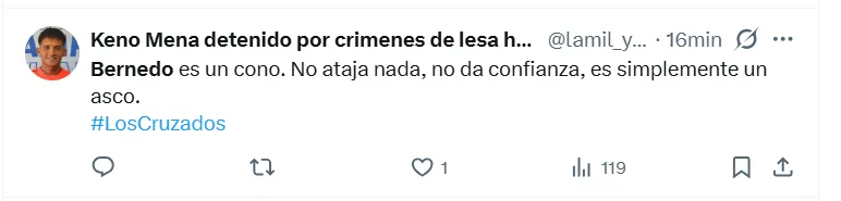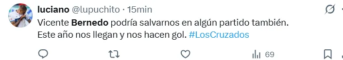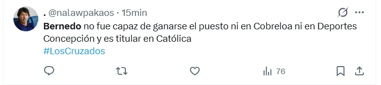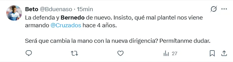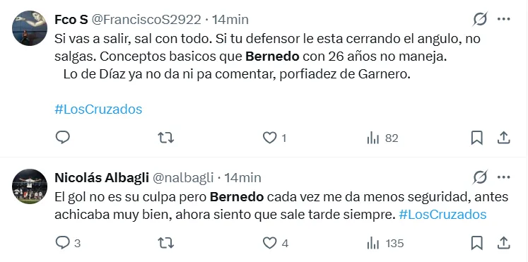 “Bernedo no agarra nada y Juan Díaz no puede jugar de central en Catolica, simplemente no le da”, o ” Ya deberían sacar a Bernedo damos la cacha con este arquero”.