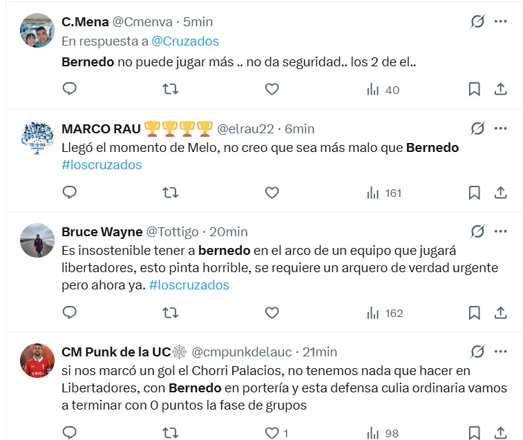 Tal y como mencionamos, Bernedo y Cerezo fueron blanco de críticas a través de redes sociales por parte de los hinchas Cruzados.