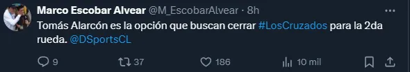 “Tomás Alarcón es la opción que buscan cerrar Universidad Católica para la 2da rueda”, fue lo que informó el comunicador en su cuenta de ‘X’.