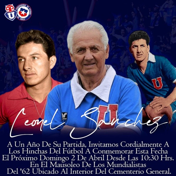Y en muestra de agradecimiento, la familia del ex delantero está convocando a todos los hinchas de la U y del fútbol en sí, para que el próximo domingo 2 de abril, día en que se cumpla un año de la partida de Sánchez, a reunirse frente al mausoleo de los históricos del ’62 en el Cementerio General, a las 10:30 horas de aquel día.