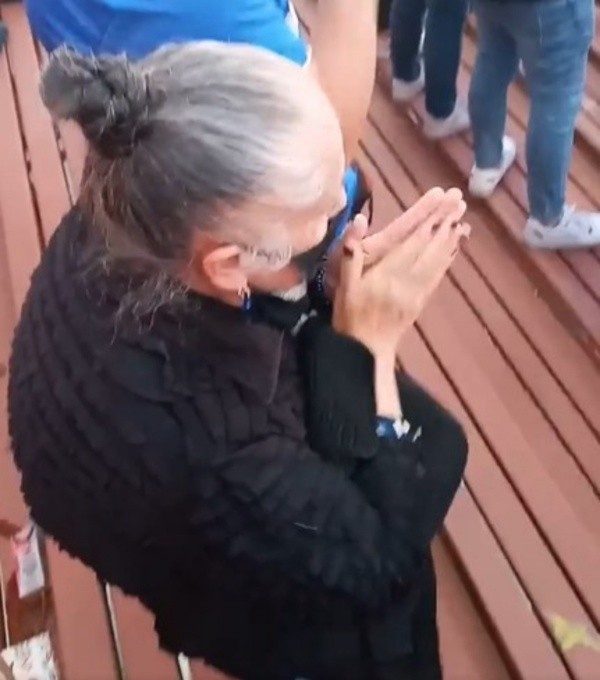 Hace más de 30 años, yo creodesde 1993, antes no podíamos ir. Cuando mi hijo pudo, me llevó al estadio y ahí no nos separamos más porque nos enamoramos de la U, de la barra, como tocaban el bombo, todo. La primera vez que vi a la U fue cuando a mi hijo le regalaron entradas para ver a Palestino, los invitó a todos y fuimos. Llegar al Estadio Nacional y ver todo de azul, eso nos robó el corazón y desde entonces, nosotros no hemos dejado de ir a ver a la U a todos lados, mientras podamos ir.