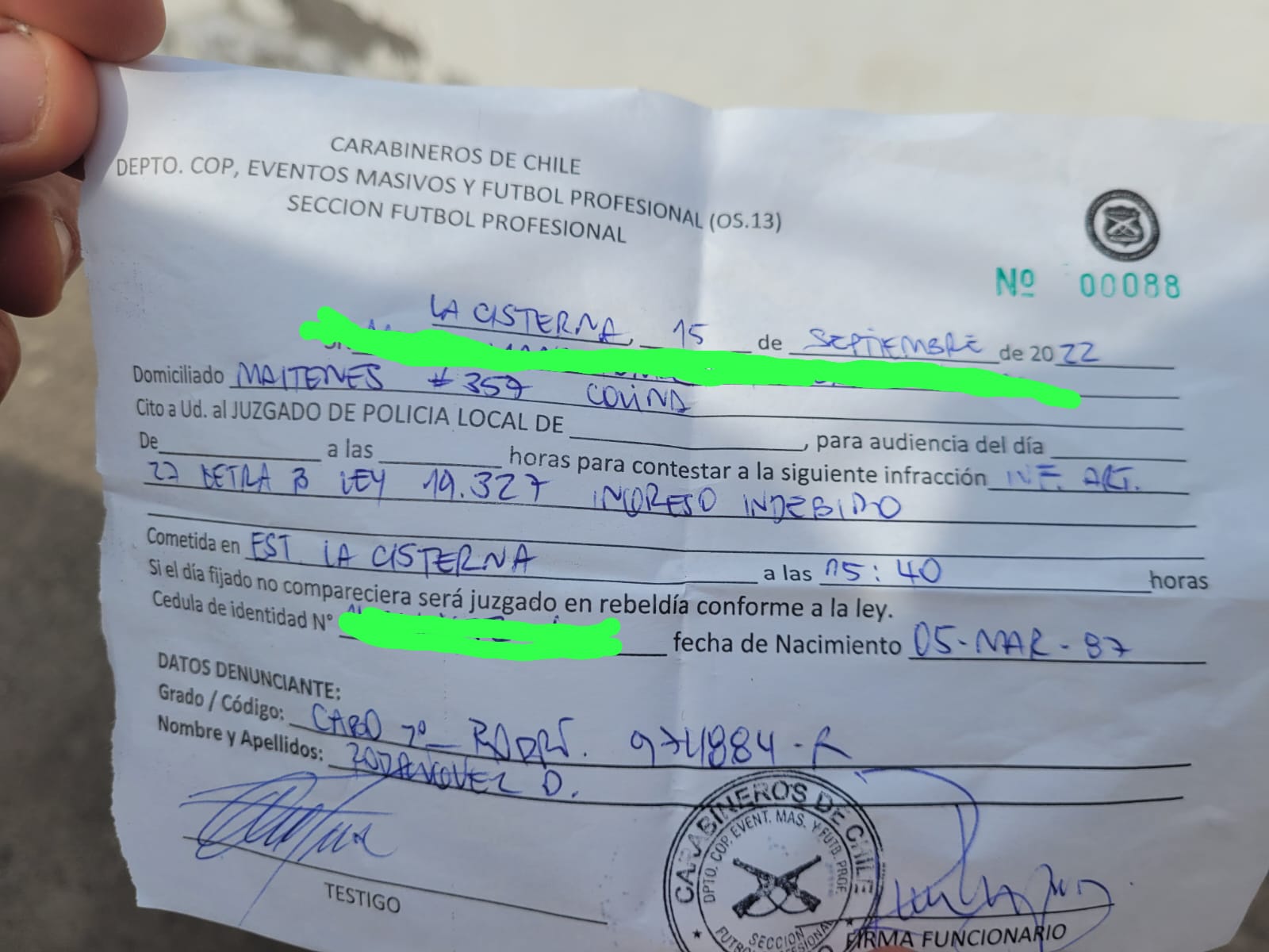 ¿El problema? Algunos hinchas azules pudieron comprar entradas para este compromiso por problemas en el sistema de la venta de entradas pero al no ser parte de las cortesía, Carabineros decidió sacarlos del recinto y citarlos a los diferentes juzgados de policia por “ingreso indebido”.